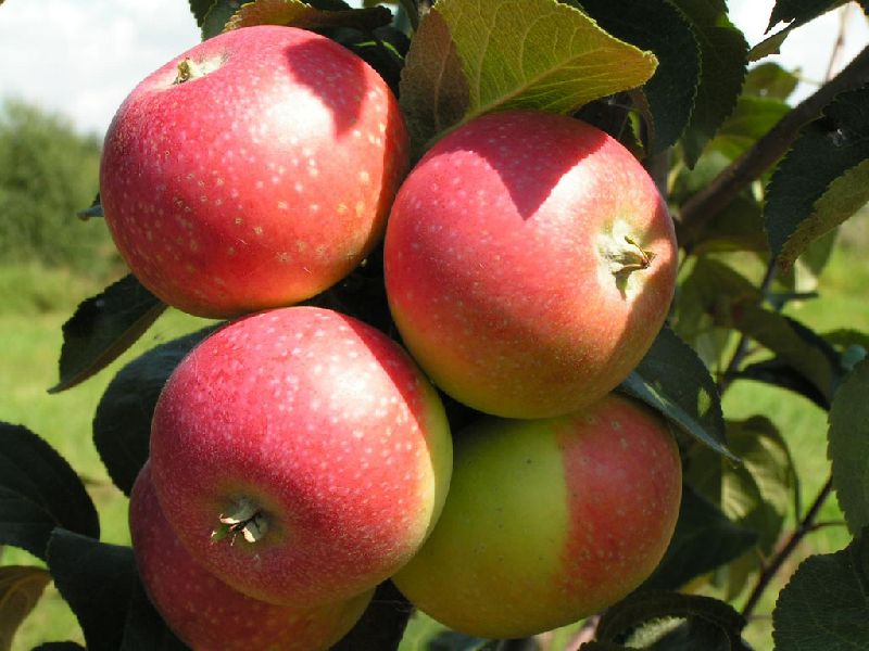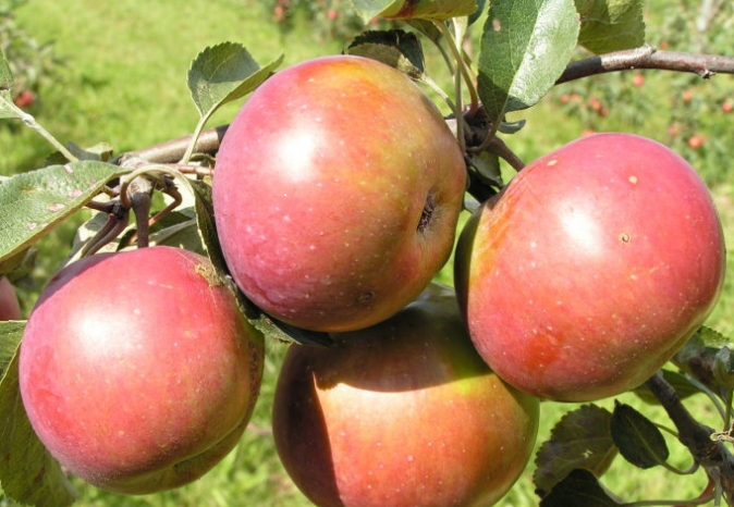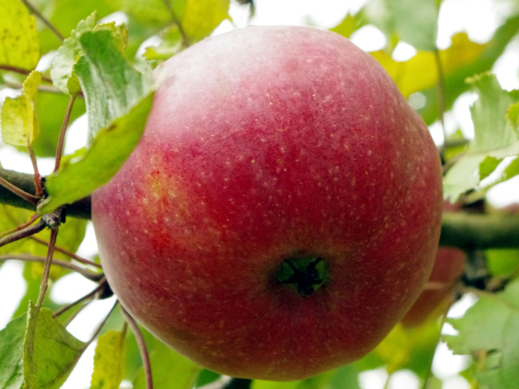Плоды выше средней величины (средняя масса – 160 г), округлой или округло-конической формы. Основная окраска в момент съемной зрелости зеленоватая, покровная – темно-красная с фиолетовым оттенком по большей части плода. Подкожных точек много, крупные, серые, хорошо заметные.
