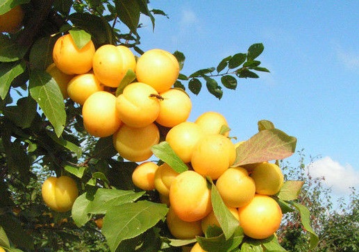 Плоды крупные (средняя масса – 36 г), округлые. Брюшной шов глубокий. Основная и покровная окраска кожицы жёлтая.