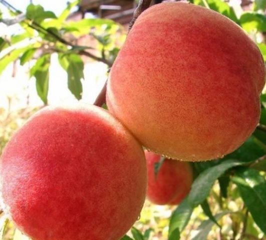 Плоды среднего размера, массой 120-150 г и более, светло-оранжевого цвета, с большим красным румянцем, почти по всей поверхности плода